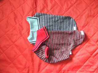 S01 水色とピンクのボーダーに、水色の襟を付けました。