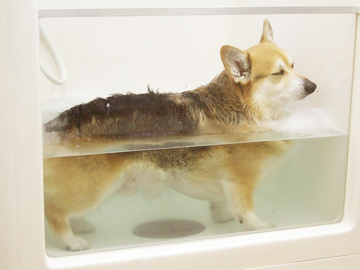 湿疹のできやすい脇などもしっかり洗浄。 - 浴槽に浸かっての浮力も利用しながらの洗浄・薬浴が可能なため、